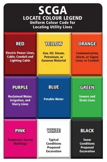 The marking of the locations of buried facilities in Saskatchewan follows the Uniform Color Code: